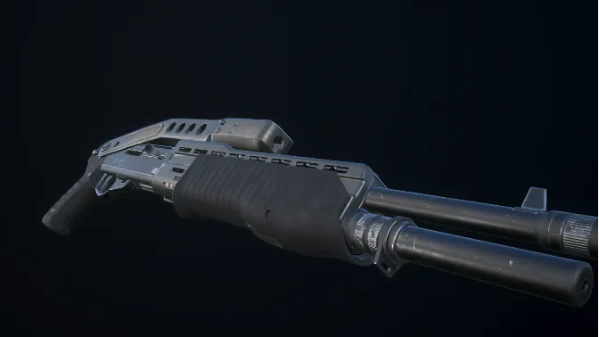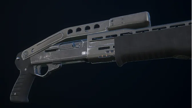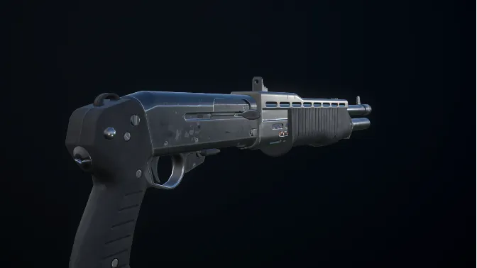 The rifle is made in pbr shading, is a model of the shotspas 12 has three materials:
