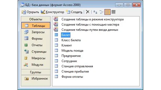 Среда разработки: Microsoft Office Access.