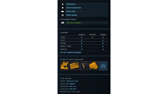 🟡Ссылка на игру в steam - https://store.steampowered.com/app/865610/Tails_Noir/