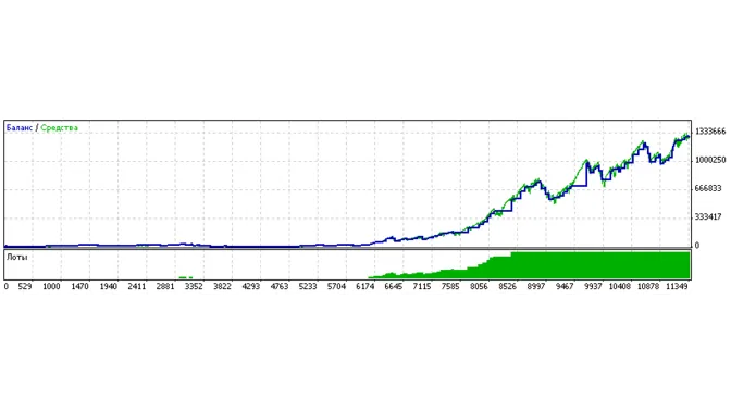 Доходность: примерно +200 % в год (0,1 лотом),при использовании MM прибыль выражается шестизначными цифрами.